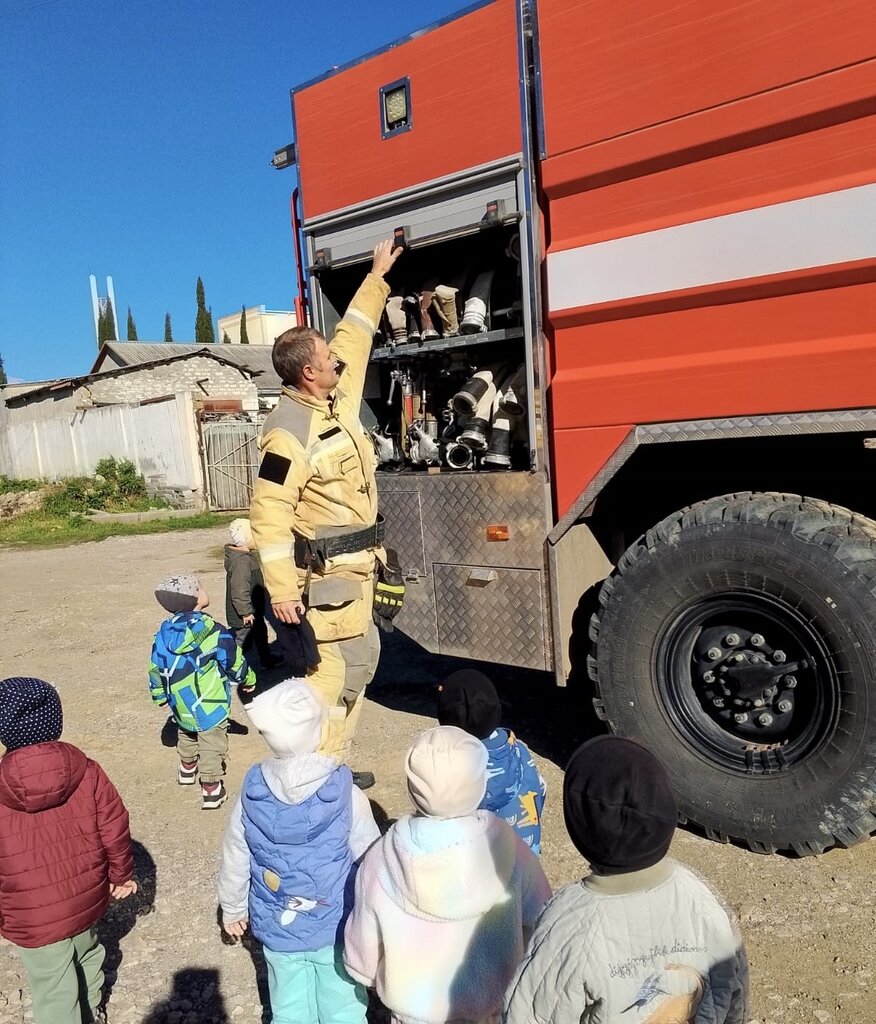 - Рассмотрели пожарную машину и её оборудование